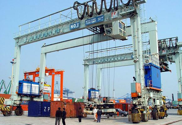 1. Gúmmístýrð gámur krani er venjulega kölluð RTG í stuttu máli, sem er starfandi til að stafla ílát í geymsluplötur. Gúmmíhólkur í gúmmíhlaupi er sveigjanlega fluttur með eigin gúmmídekki til að skipta um gámum.