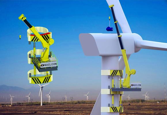 Það er sjálfs klifrað krani til að viðhalda vindorku sem samanstendur af fjórum meginþáttum: aðlögunarhæft klemmakerfi, hábrúnar lyftikerfi, vökvakerfi og rafkerfi.